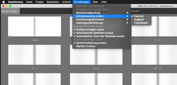 Die Bookfactory Gestaltungssoftware gibt es in folgenden Sprachen: