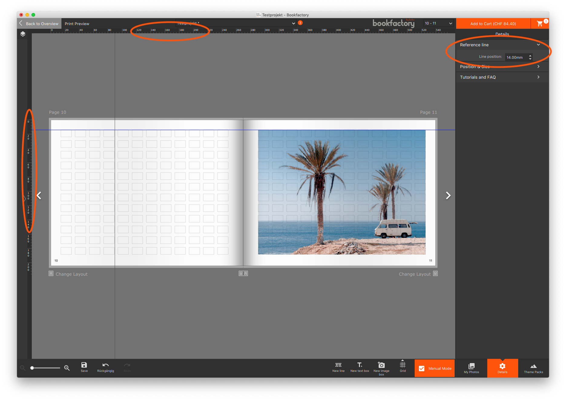 - Aktiviere dafür unter "Einstellungen" die Option «Lineale/Hilfslinien»